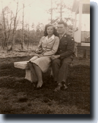 One more memory (and our favorite) was when my mother and friends, obviously dressed for a special occasion, were waiting for a bus. As they boarded, a couple of servicemen came up and asked them where they were going. My mother took notice of one handsome GI, but being a lady, would not tell him where they were going. The handsome GI, Eugene Horton, caught the next bus, asked where there was a dance that night and had the driver drop him off there. He found my mother and asked her to dance. They dated every time he had leave after that.